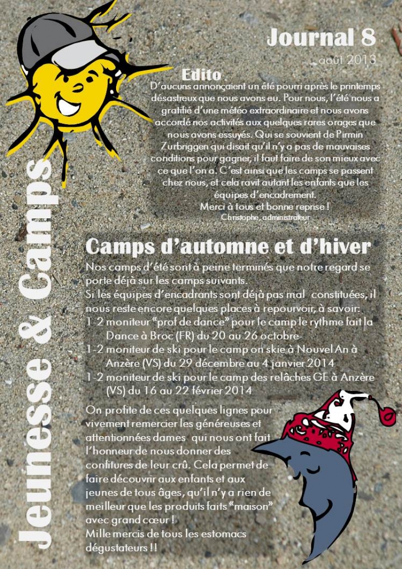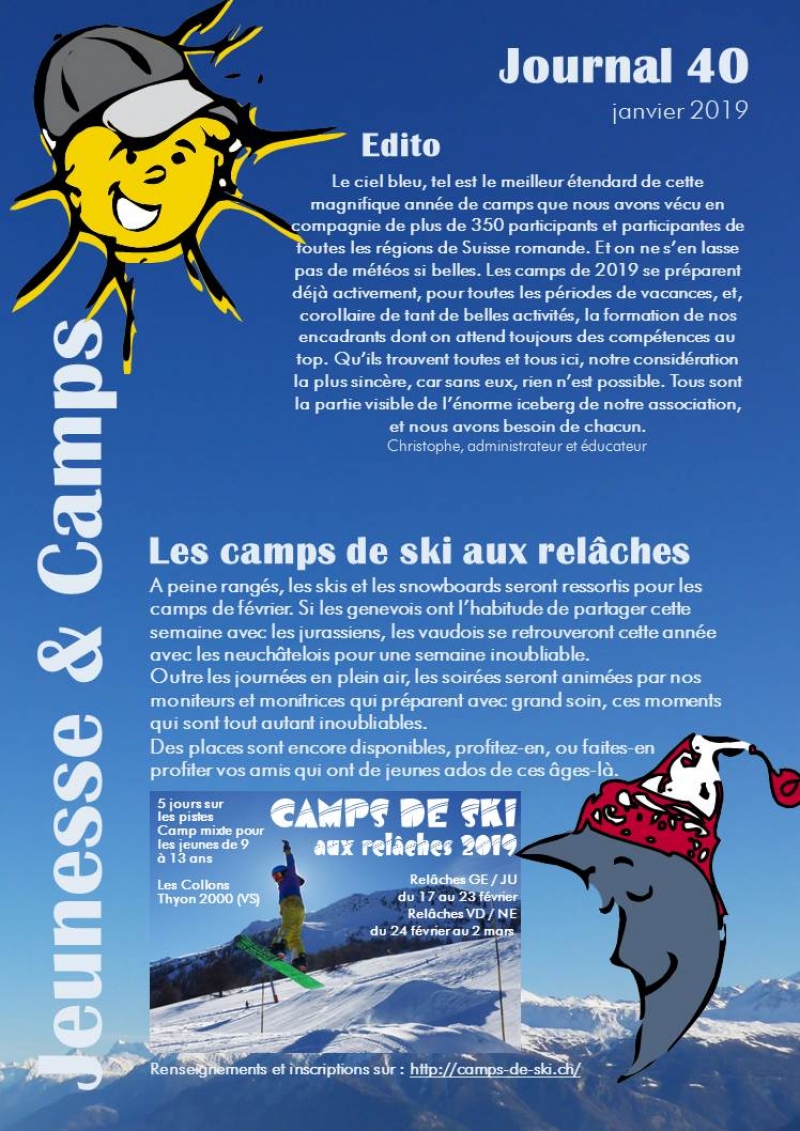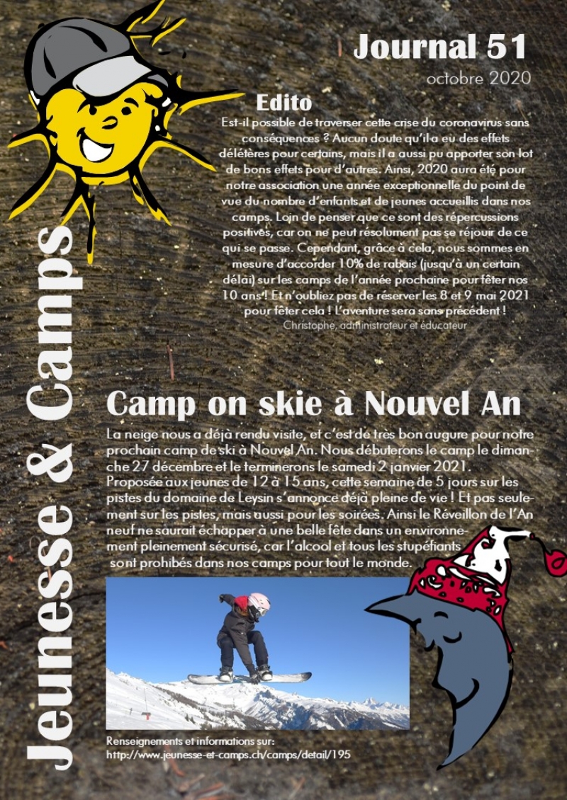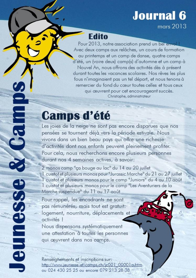 1er journal de Jeunesse et Camps: convocation à l'Assemblée Générale, le camp de ski et de snowboard à Saas Grund et l'annonce des camps d'été