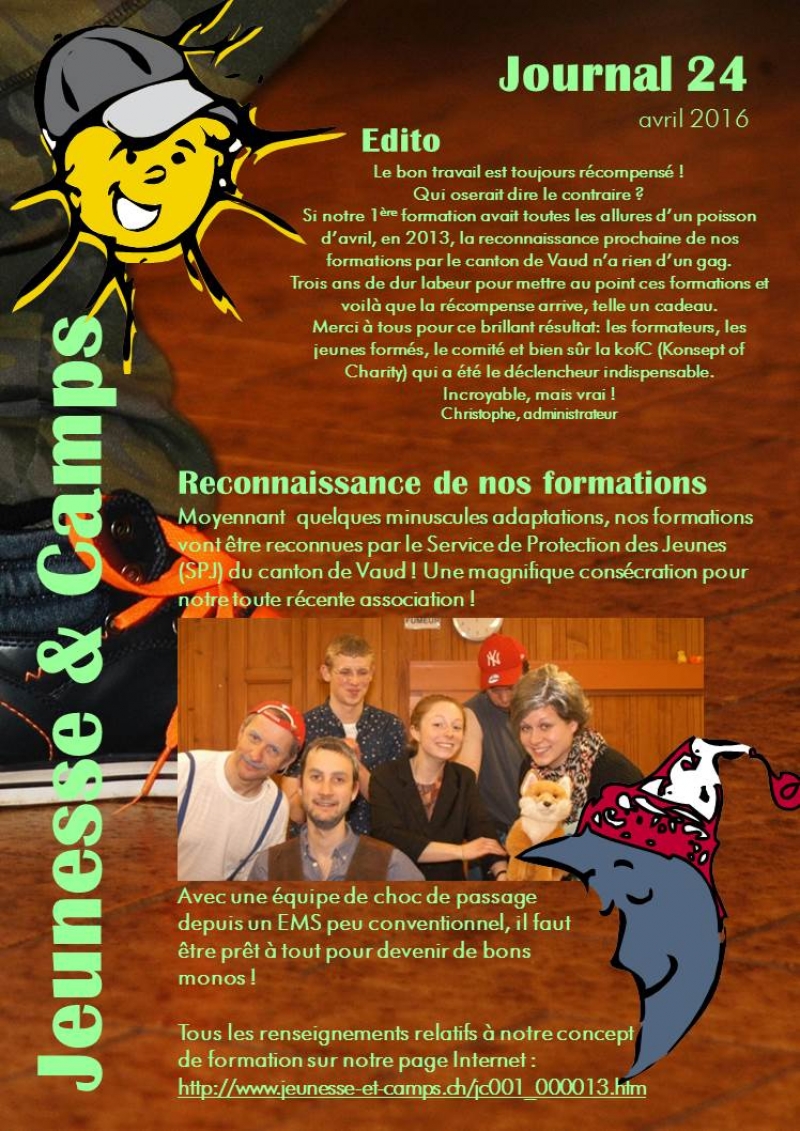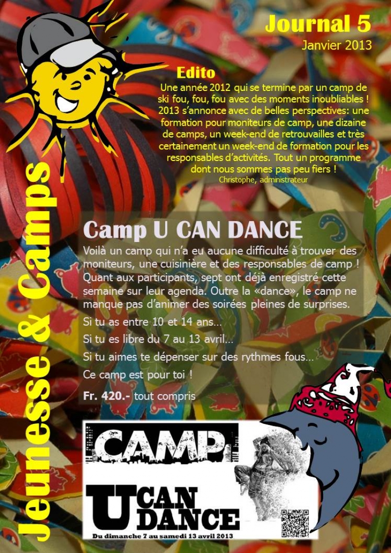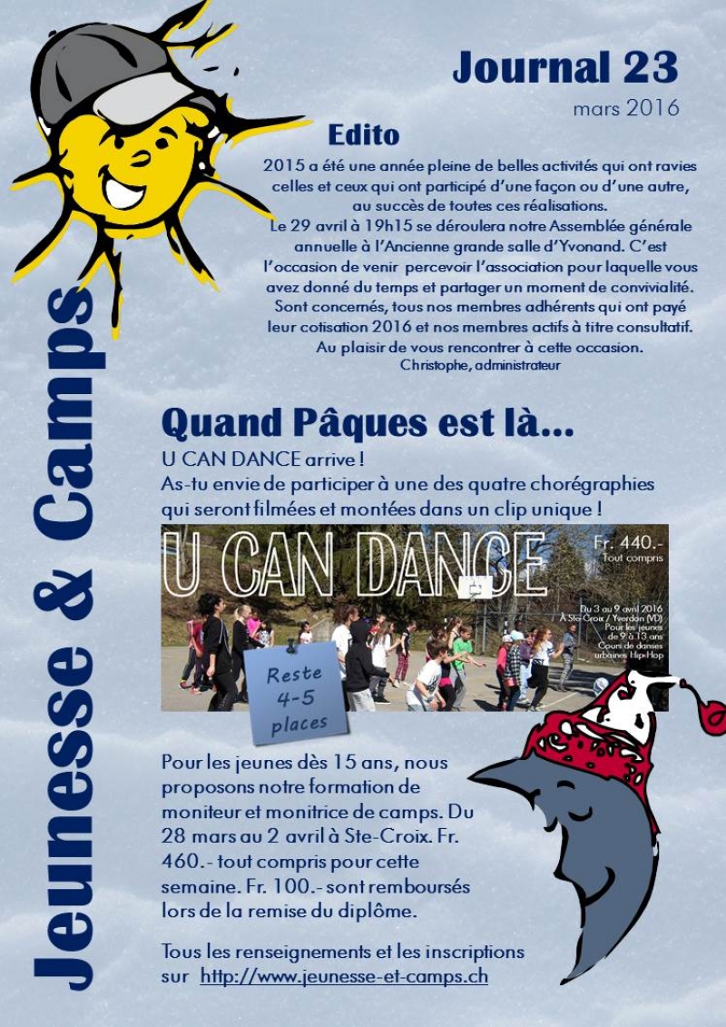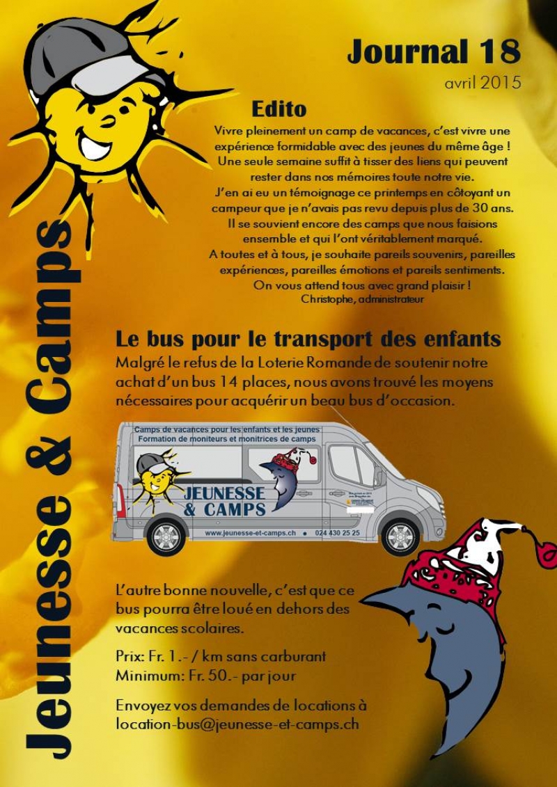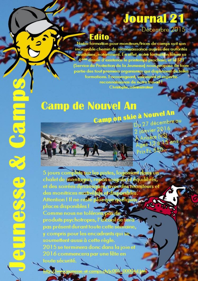 1er journal de Jeunesse et Camps: convocation à l'Assemblée Générale, le camp de ski et de snowboard à Saas Grund et l'annonce des camps d'été